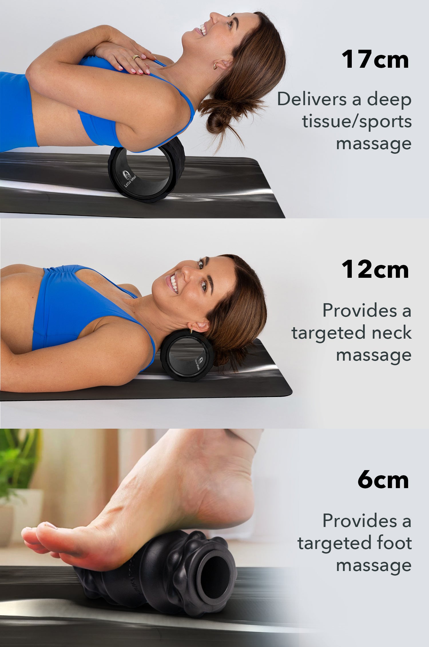 Each wheel features our signature diamond-textured foam for a smooth, comfortable feel and just the right amount of pressure. Lightweight, stackable, and built to last — the 5-Pack supports full-body stretching, balance, and relaxation.
